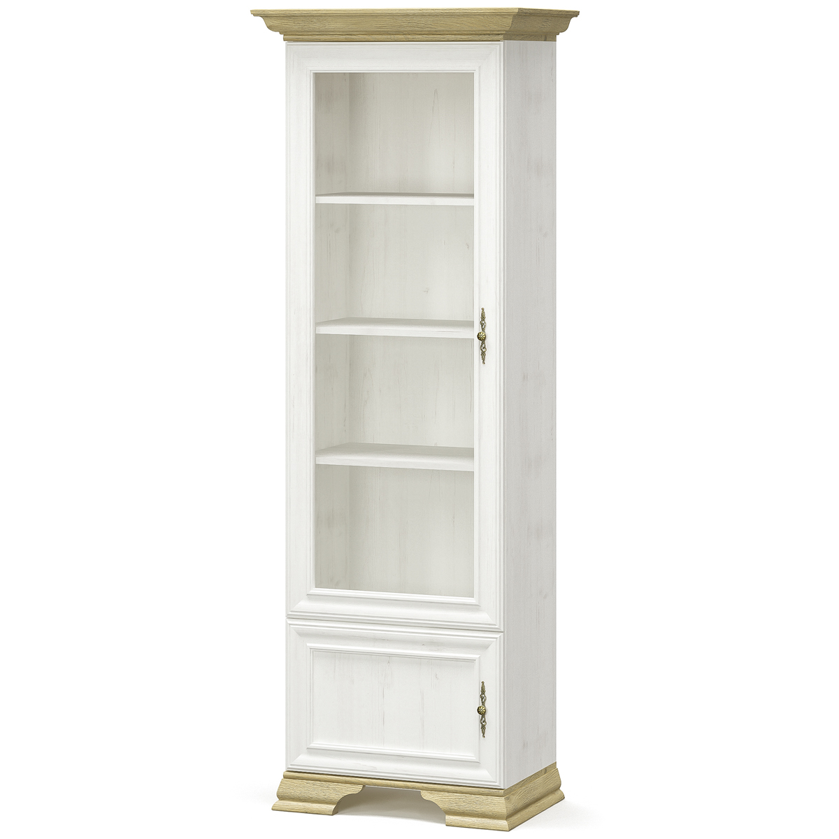 Vitrína IGINS PB-1W1D si Vás získa svojou eleganciou a provensálskymi prvkami, ako sú zaujímavé ornamentové úchytky, vrchná doska ukončená ozdobnou lištou či netradičné riešenie nožičiek. Farebné prevedenie sosna Andersen je krásne doplnené prevedením dub zlatý, farby spolu dokonale ladia…