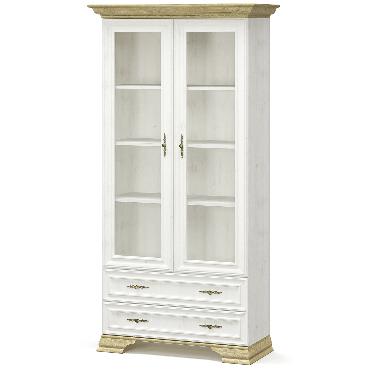 Vitrína IGINS SC-2W2DRW si Vás získa svojou eleganciou a provensálskymi prvkami, ako sú zaujímavé ornamentové úchytky, vrchná doska ukončená ozdobnou lištou či netradičné riešenie nožičiek. Farebné prevedenie sosna Andersen je krásne doplnené prevedením dub zlatý, farby spolu dokonale ladia…