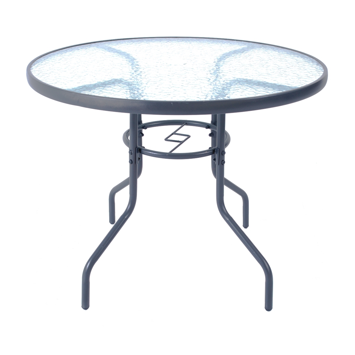 Praktický kovový stôl JUPITER 90 je vhodný na balkón, terasu či do záhrady. Konštrukcia stola je z kovových trubiek 24 x 0,8 mm grafitovej farby a odkladacia plocha z výstuženého skla hrúbky 5 mm. V strede stola sa nachádza otvor s praktickou kritkou pre umiestnenie slnečníka. Je vhodný pre…