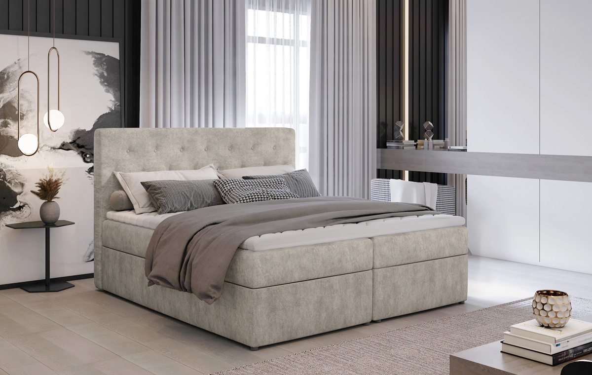 NABBI Liborn 140 čalúnená manželská posteľ s úložným priestorom béžová