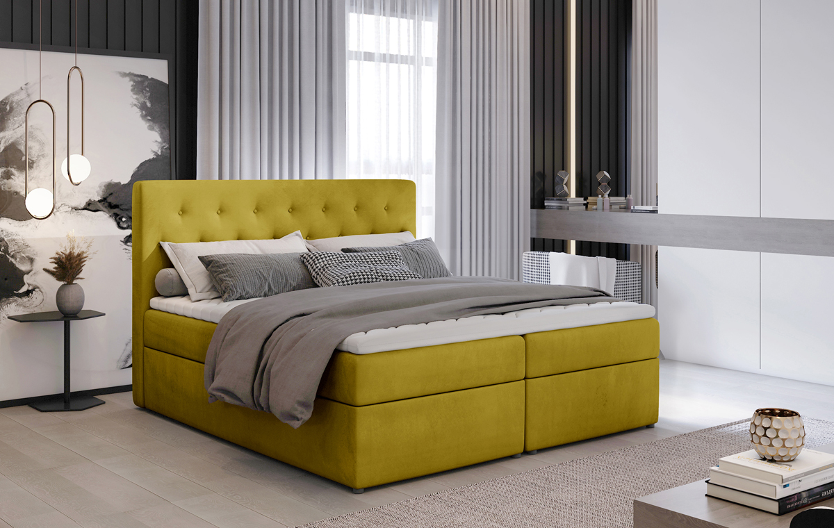 NABBI Liborn 140 čalúnená manželská posteľ s úložným priestorom zlatá