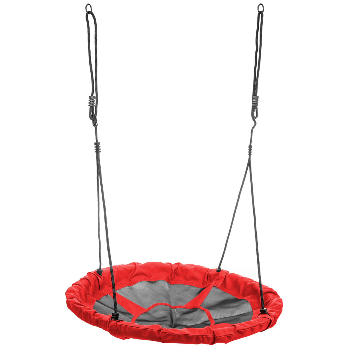 Detská hojdačka NEST 95 cm je oválna hojdačka v tvare hniezda s nastaviteľnou dĺžkou lana, vo farbe čierna, v kombinácii s červenou, no v ponuke ju máme vo viacerých farebných prevedeniach. Sedák je vyrobený z PE sieťoviny a čierne pletené lano je doplnené čiernymi PP zvarmi. Priemer sedáku je 95…