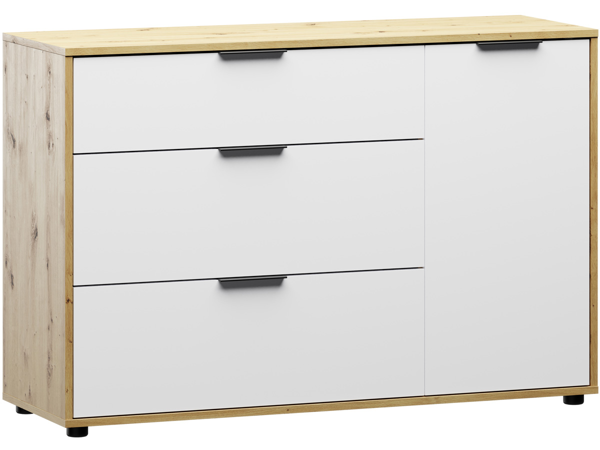 NABBI Neston 1D/3DR komoda so zásuvkami biela / dub wotan