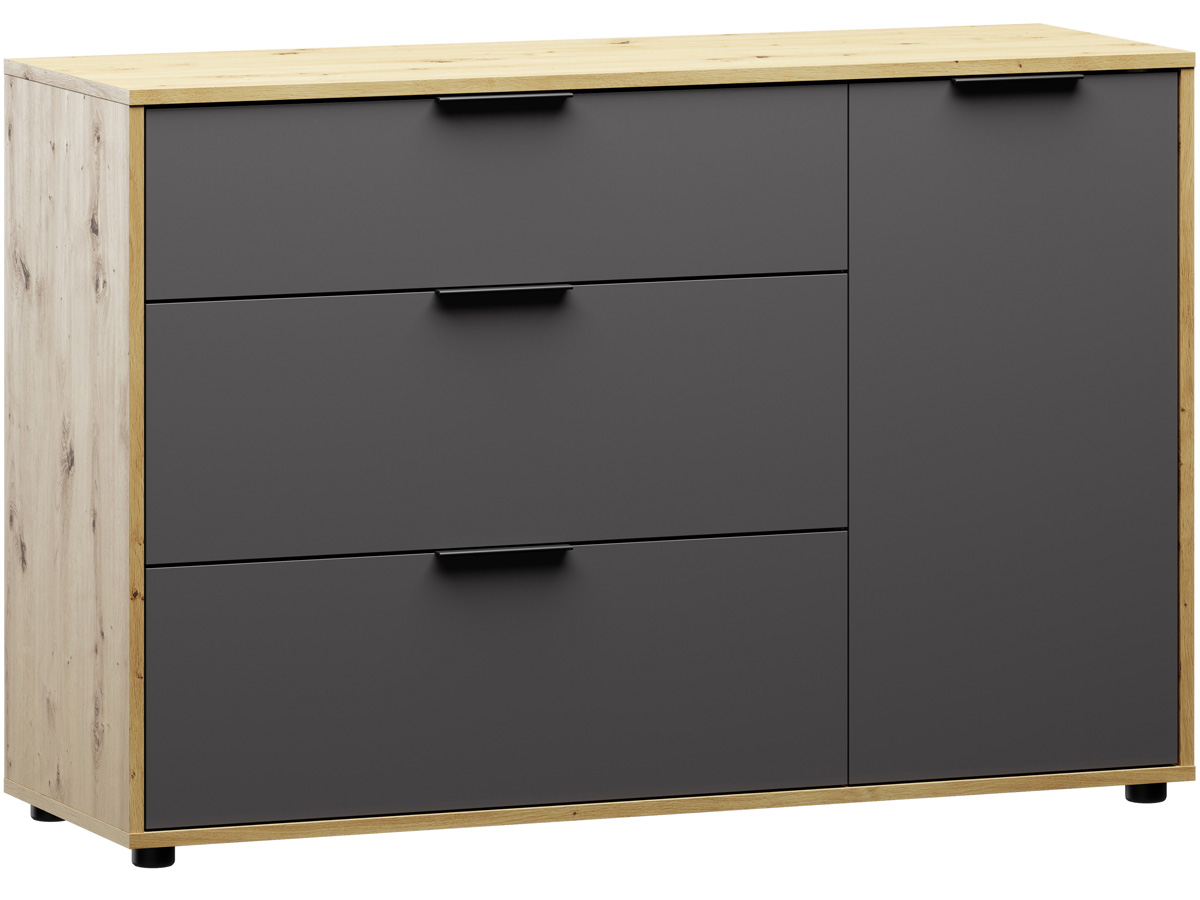 NABBI Neston 1D/3DR komoda so zásuvkami sivý grafit / dub wotan
