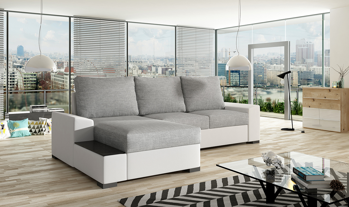 NABBI Nettuno L rohová sedačka s rozkladom a úložným priestorom svetlosivá / biela