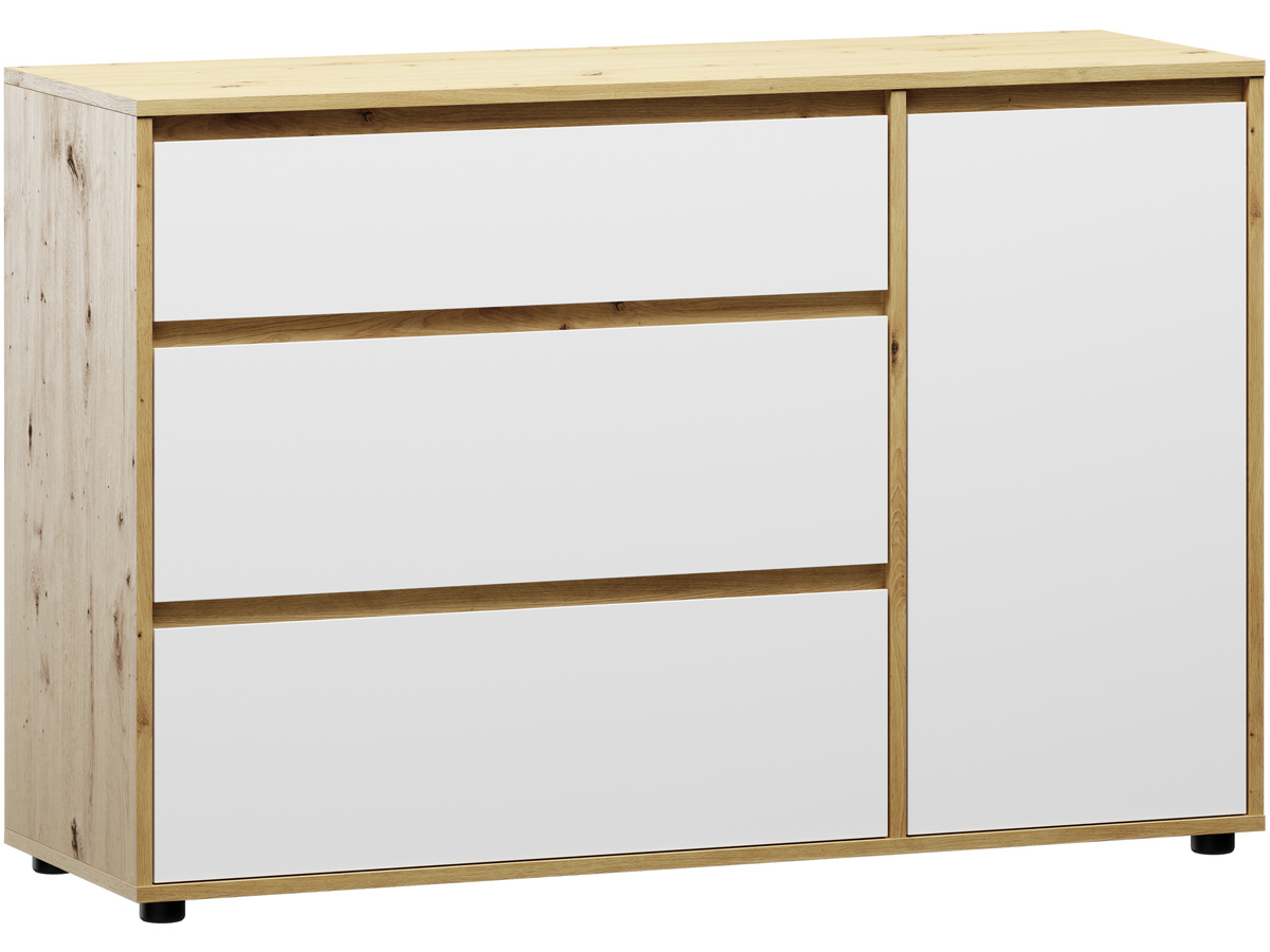 NABBI Norman CH-1D/3DR komoda so zásuvkami biela / dub wotan