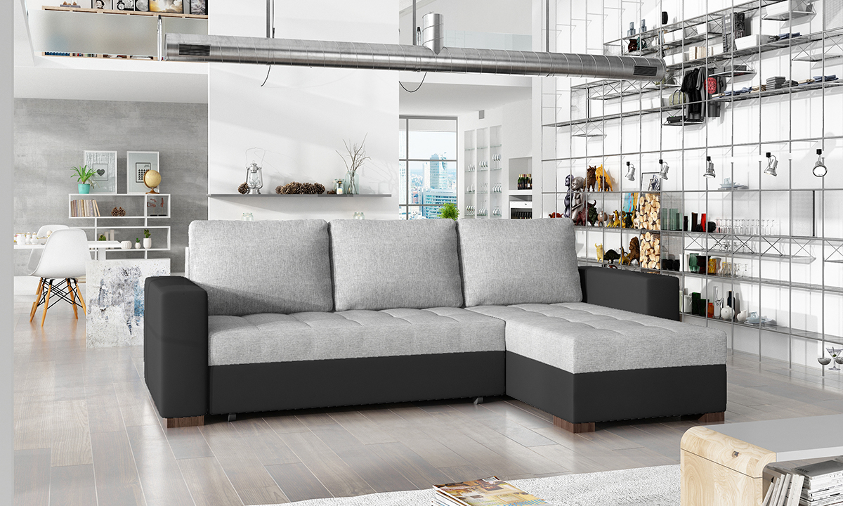 NABBI Novara L/P rohová sedačka s rozkladom a úložným priestorom svetlosivá / čierna