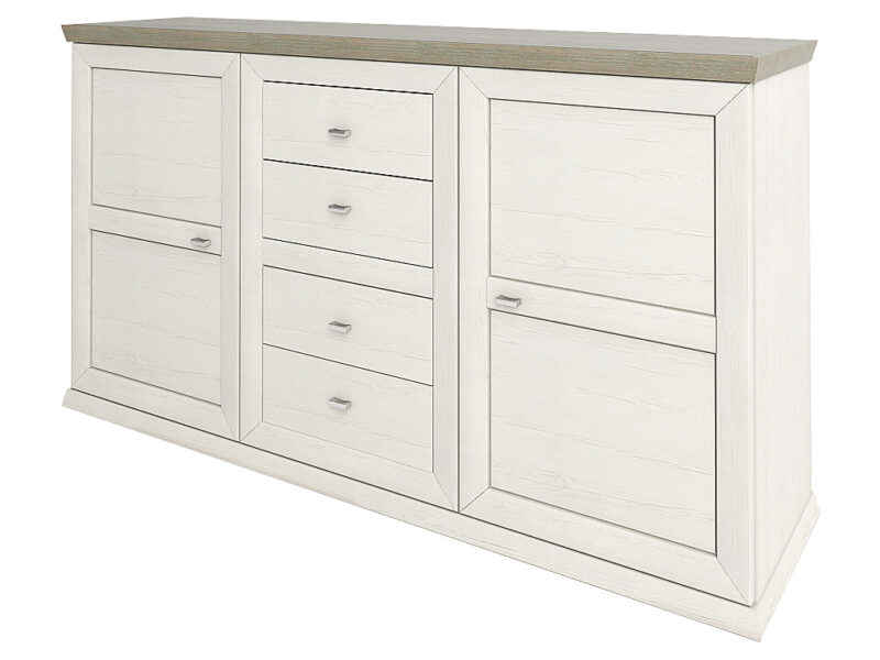 Majestátna dvojdverová komoda so zásuvkami ORENTANO CH-1800-2D/4DR vnesie do Vášho domova kúsok provensálskeho vánku. Rozmery komody sú (ŠxHxV): 180,2×42,8×89,3 cm. Nábytok z kolekcie Orentano je zhotovený z kvalitných materiálov ako sú DTD (drevotriesková doska) a MDF (drevovláknitá doska). Hrúbka…