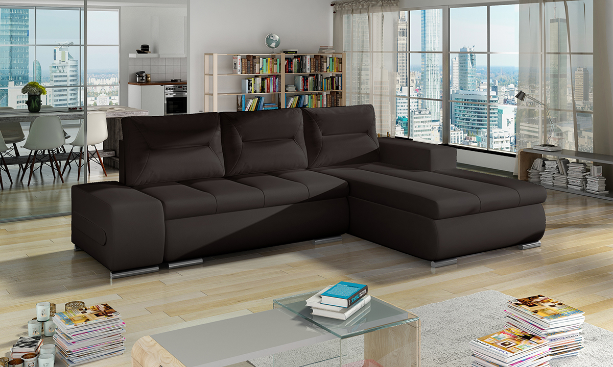 NABBI Otelo P rohová sedačka s rozkladom a úložným priestorom tmavohnedá