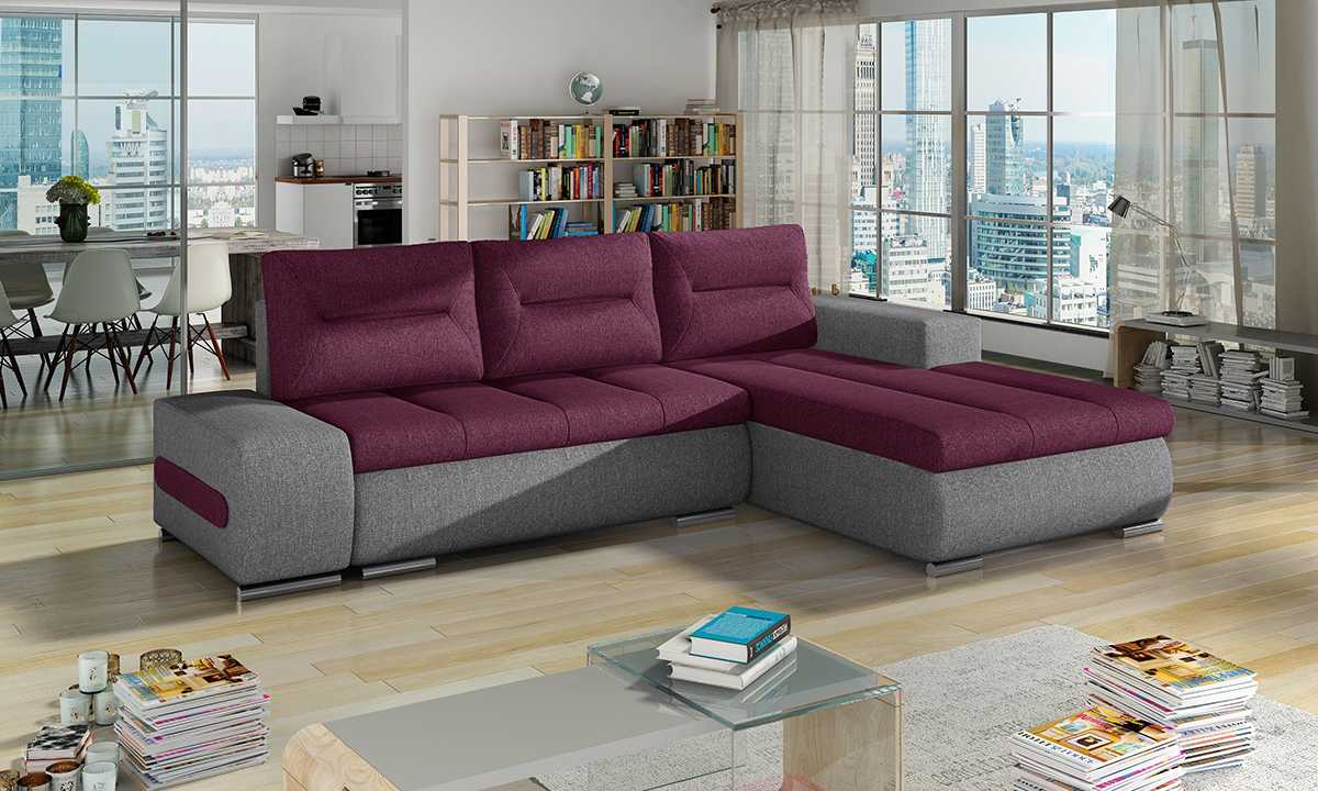 NABBI Otelo P rohová sedačka s rozkladom a úložným priestorom tmavoružová (Lars 68) / sivá (Lars 98)