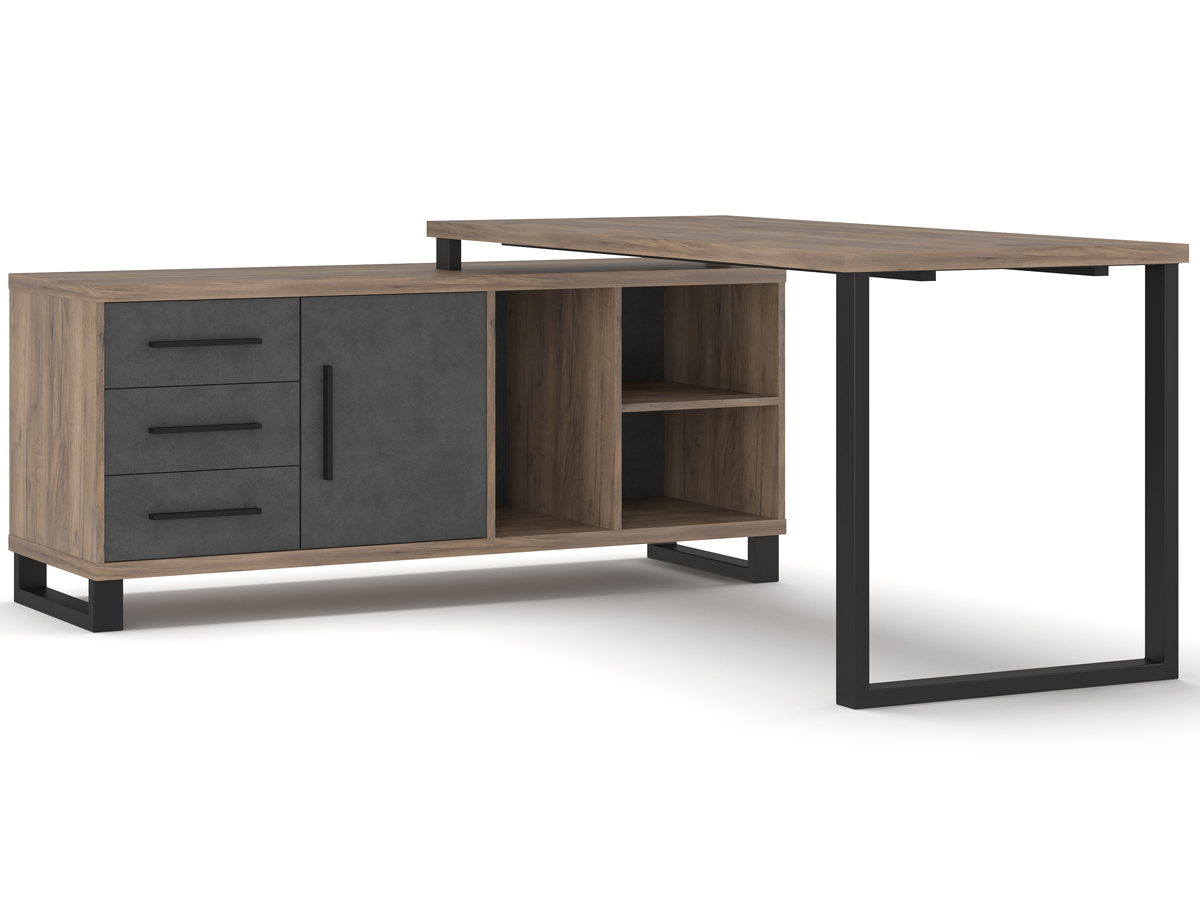 NABBI Ovida 1D3DRWS rohový písací stôl craft tobaco / matera