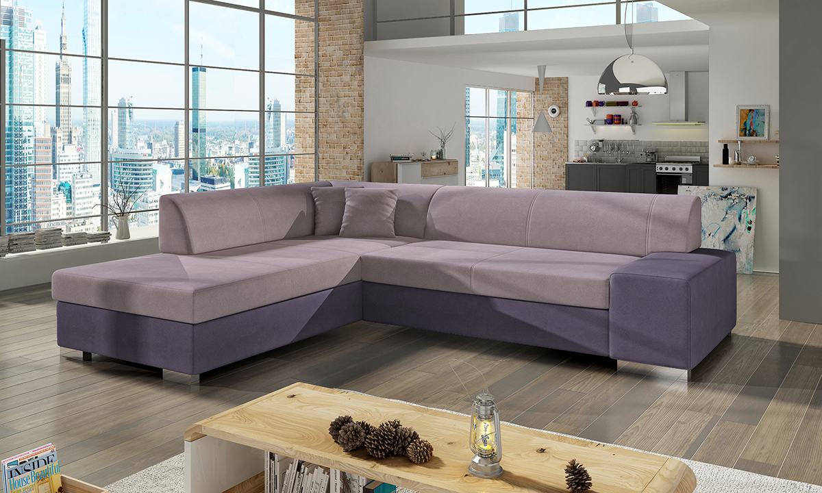 NABBI Pinero L rohová sedačka s rozkladom a úložným priestorom ružová / fialová