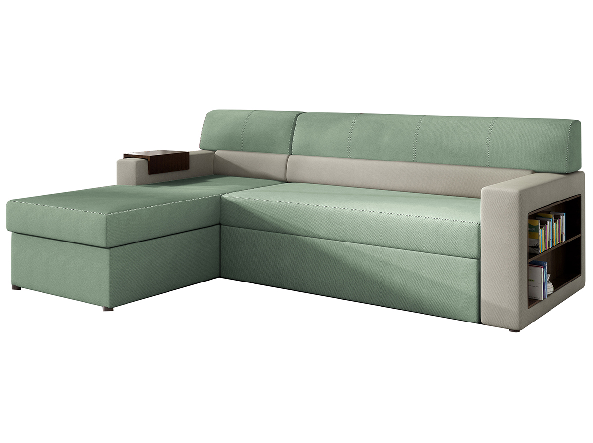NABBI Rieti L rohová sedačka s rozkladom a úložným priestorom mentolová / svetlosivá