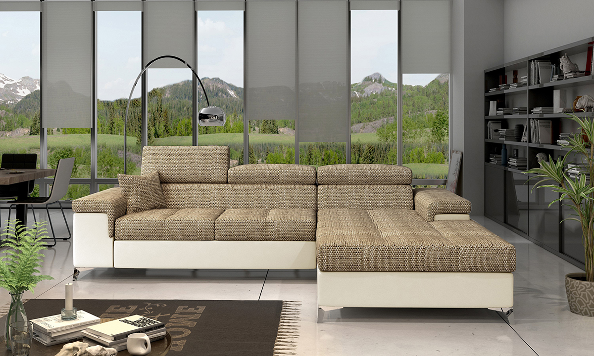 NABBI Rosino P rohová sedačka s rozkladom a úložným priestorom cappuccino / béžová
