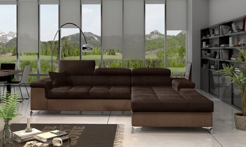 NABBI Rosino P rohová sedačka s rozkladom a úložným priestorom tmavohnedá / hnedá