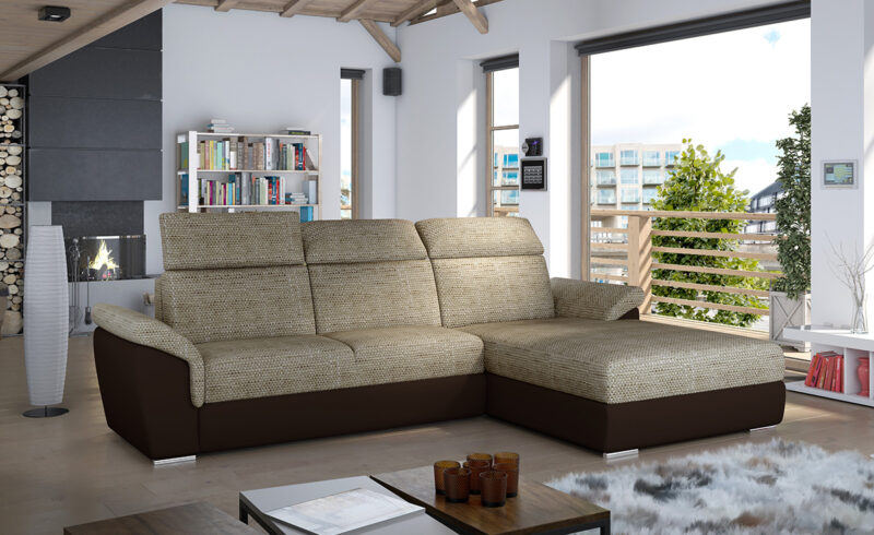 Moderná rohová sedačka TARRAGON P vyrobená v tvare L je vhodná do každého interiéru, či už moderného alebo klasického. Jednoduchá elegancia, ktorou sedačka vyniká je neprehliadnuteľná a zaujme hneď na prvý pohľad, už pri vstupe do miestnosti. Farebné prevedenie látky a ekokože sedačky je cappuccino…