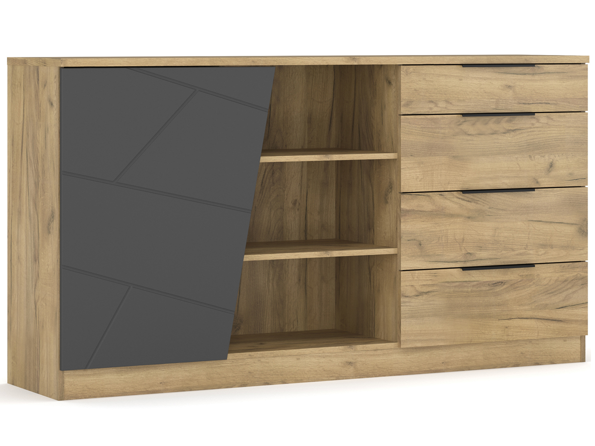 Jednodverová komoda so zásuvkami Viliam CH-1D4DRWS je moderným a praktickým kusom nábytku, ktorý sa hodí do každého interiéru. Jej farebné prevedenie v odtieňoch dub craft zlatý / sivá dodáva priestoru eleganciu a štýl.
