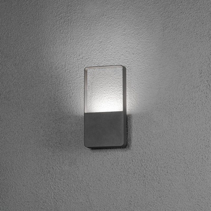 Nádherné LED vonkajšie nástenné svietidlo Matera Ak pripevníte toto vonkajšie LED nástenné svetlo na fasádu domu, budete prekvapení nielen tým, aké nádherné svetlo premieta, ale aj tým, ako štýlovo doplní fasádu domu. Toto je dosiahnuté hlavne špeciálnym dizajnom, ktorý je výsledkom malej tmavošedej hliníkovej konzoly a matného akrylového plechu, ktorý je zozadu zasadený do teplého bieleho LED svetla. Matera – osvetľovací objekt, vďaka ktorému je každá fasáda domu pútavá!