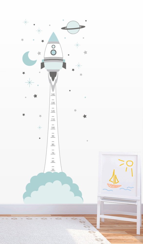 Nálepka na stenu detský meter na meranie výšky – raketa