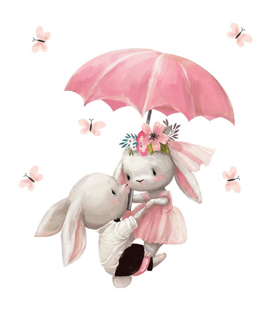 Nálepka na stenu pre dievčatko zajačikovia s dáždnikom