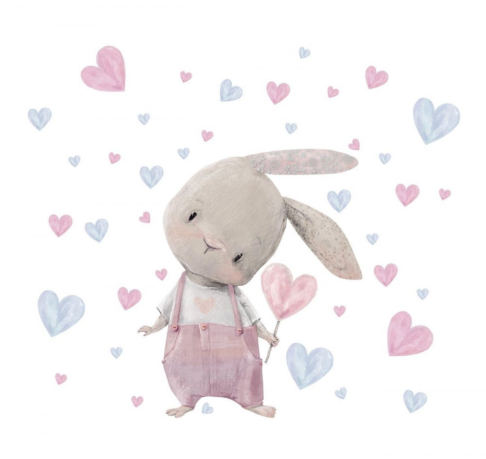 Nálepka na stenu roztomilý zajačik so srdiečkami 83 x 70 cm