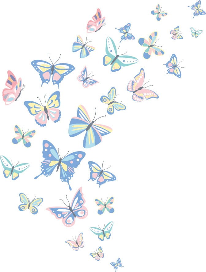 Nálepka na stenu s motýľmi v krásnych pastelových farbách 114 x 150 cm