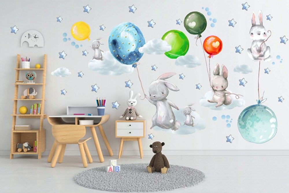 Domovská stránka » Katalóg » Nálepky do detskej izby zajačiky s farebnými balónmi 60 x 120 cm