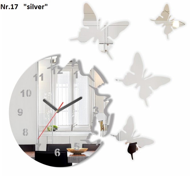 Nalepovacie hodiny na stenu s motívom motýľov strieborná