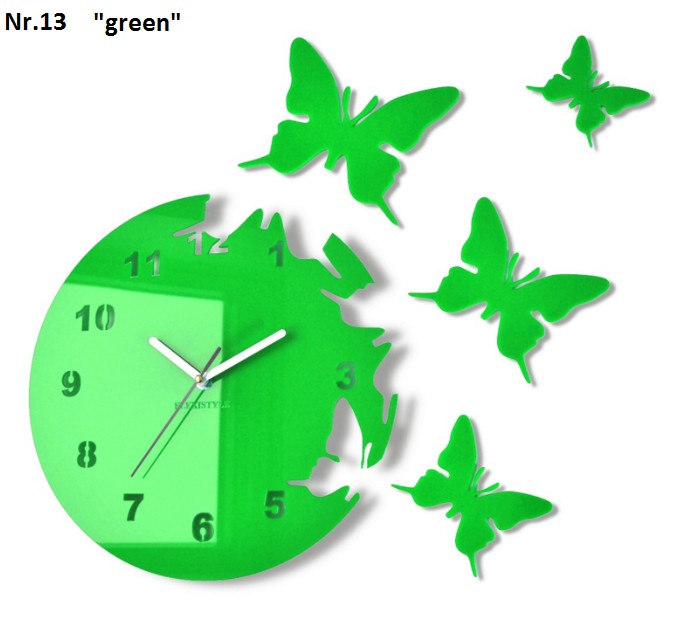 Nalepovacie hodiny na stenu s motívom motýľov zelená