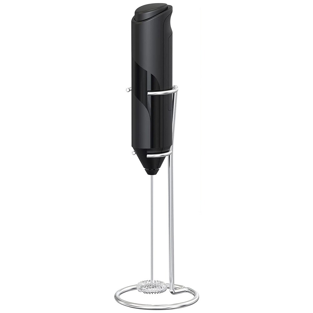 Koncovka napeňovača sa jednoducho čistí. Stačí ju opláchnuť pod vodou alebo vložiť do pohára s vodou a pustiť. Vyrobené z kvalitného plastu a ocele. Súčasťou je kovový stojan na jednoduché uloženie napeňovača.
