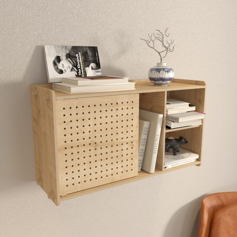 Pridajte prvú recenziu pre “Nástenná knižnica v dekore duba v prírodnej farbe 65×30 cm Sima – Kalune Design”