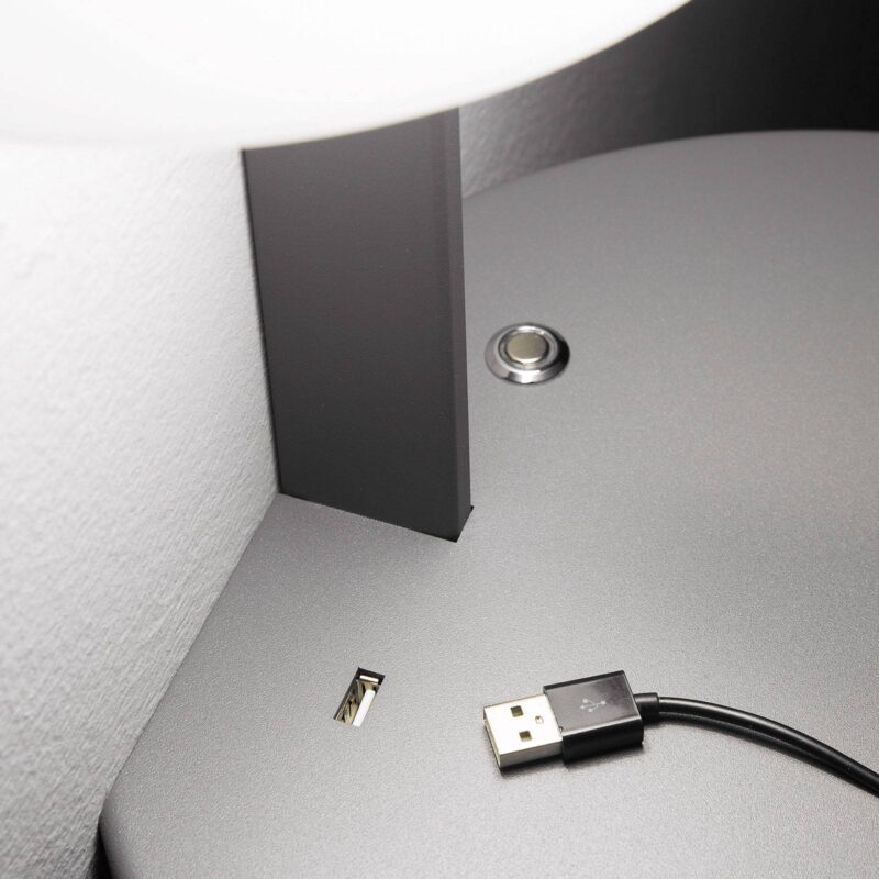 LED nástenné svietidlo Goodnight s USB portom a pripevnenou poličkou na stôl LED nástenné svetlo Goodnight je moderné a multifunkčné s integrovaným dotykovým stmievačom, USB pripojením a úložným priestorom pod svetlom. Lampa je dokonalou zmesou klasických a moderných detailov, ktorá je vybavená multifunkčnými funkciami. tienidlo na lampu je navrhnuté v klasickom štýle, drží ho tyč a stojí vertikálne na poličke. Celkovo vyzerá Goodnight ako stolová lampa na stenu, ktorá je pripojená k elektrickej zásuvke káblom. V kábli je zabudovaný vypínač na jeho zapnutie a vypnutie, zatiaľ čo jas je možné meniť pomocou dotykového stmievača nainštalovaného na poličke. Je tiež možné nabíjať elektronické zariadenia cez integrovaný USB port. LED nástenné svietidlo Goodnight poskytuje príjemné svetlo svojim teplým bielym osvetlením a je ideálne umiestnené ako osvetlenie nočného stolíka v spálni.