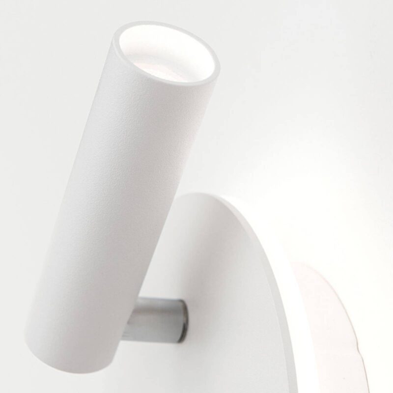 Nástenné svietidlo LED Lenny s nepriamym a priamym svetlom Lenny je ideálne svietidlo na montáž vedľa postele alebo nad ňu. Ponúka nepriame aj priame svetlo, ktoré možno dokonale nastaviť vďaka otočnému a výkyvnému bodu. Nepriame osvetlenie vytvárajú LED diódy usporiadané okolo krycej dosky v kruhu za satinovaným akrylovým krytom. Vyžaruje rovnomerne po celej stene. Nástenné svietidlo Lenny je vyrobené z hliníka a je vybavené dvoma prepínačmi na ľahko prístupnom mieste na nástennom držiaku, ktoré umožňujú samostatné zapínanie a vypínanie oboch zdrojov svetla podľa potreby. – Spot sa otáča o 90°, otáča sa o 360