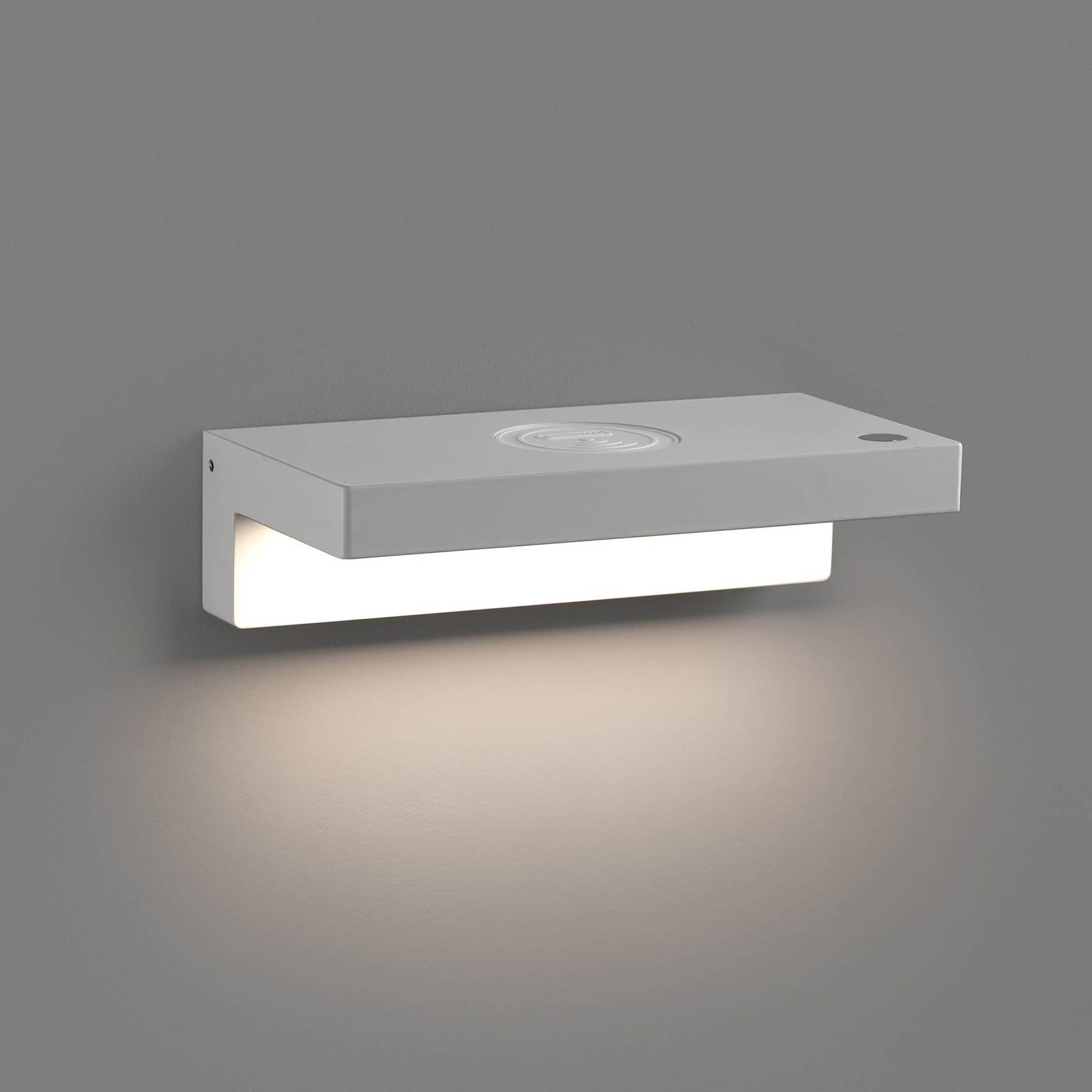 Diskrétne navrhnutá nástenná LED lampa No s bezdrôtovou nabíjačkou a nabíjačkou USB Toto nástenné svietidlo LED vyžaruje do miestnosti mäkké svetlo nepriamym spôsobom, čím vytvára útulnú atmosféru. Ideálne sa hodí do obytných a komerčných priestorov. Svetlo možno prepínať na tri rôzne úrovne jasu. Vypínač sa nachádza na základni. Vďaka svojmu nenápadnému šarmu sa nástenné svietidlo Well LED hodí k rôznym štýlom interiéru. Integrovaná bezdrôtová nabíjačka umožňuje kedykoľvek ľahko nabiť mobilný telefón.