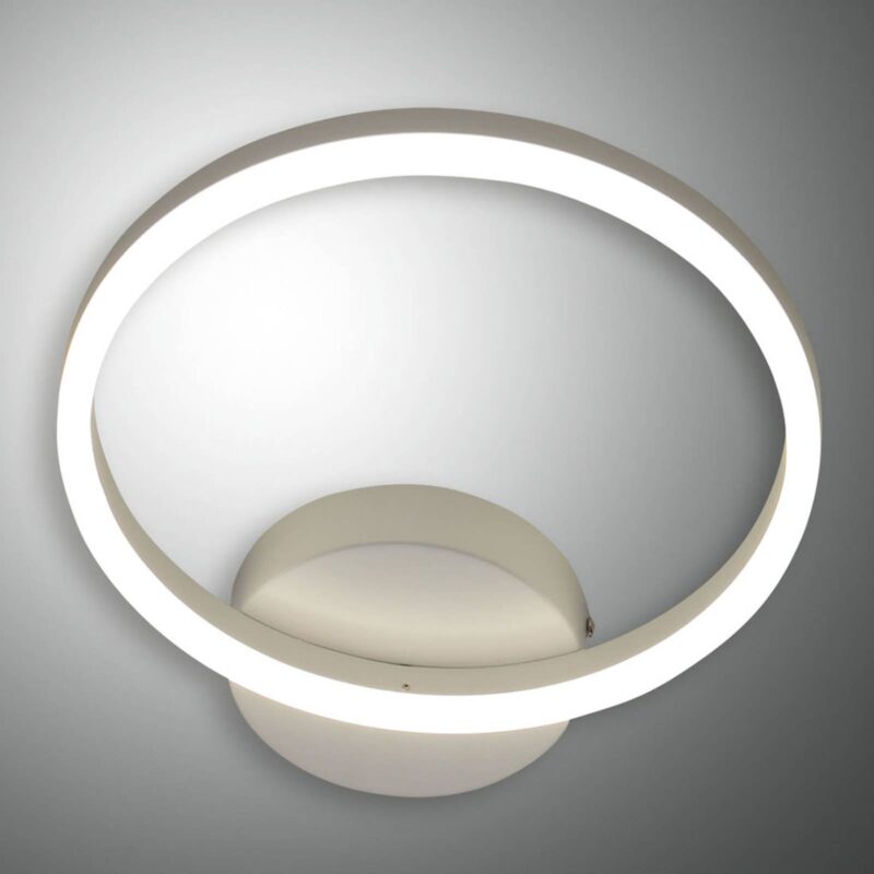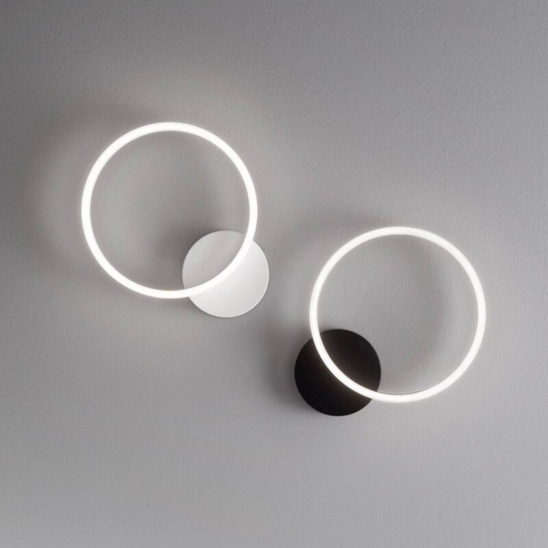 Jednohlavňové nástenné LED svetlo Giotto s prstencovým svetelným prvkom Toto trendy navrhnuté a zároveň veľmi jemne vyzerajúce nástenné LED svetlo je možné uviesť do súladu s mnohými štýlmi vybavenia. Giotto sa skladá z okrúhlej stenovej konzoly vyrobenej z kovu a kruhového svetelného prvku, ktorý je vybavený energeticky úspornými LED diódami, ktoré poskytujú príjemné okolité osvetlenie s teplým bielym sálavým svetlom na každom mieste. – stmievateľné
