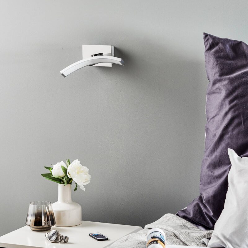 S pohyblivým tienidlo na lampu – nástenné LED svietidlo Largo Ak umiestnite nástenné svietidlo Largo LED vedľa postele alebo nad pohovku, svetlo s klenutým tienidlo na lampu poskytuje nielen mimoriadne príjemné a efektívne osvetlenie oblasti pod ním, ale vďaka elegantným dizajnom tiež mimoriadne dekoratívne. lampa úžasne zdobí stenu. Pretože tienidlo na lampu sedí na mobilnej kĺbovej hlave, je možné ho individuálne nastaviť. Stmievateľné iba dodávaným diaľkovým ovládaním.