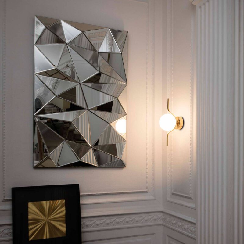 Le Vita – lesklé zlaté nástenné LED svetlo so skleneným tienidlom Moderný dizajn nástennej lampy Le Vita presvedčí lesklým zlatom a matnou bielou. tienidlo na lampu je guľa vyrobená z opálového skla, ktorá svieti zvnútra von. Zabudované LED diódy žiaria jemnou teplou bielou farbou a v kombinácii so skleneným difúzorom vytvárajú jemnú žiaru a príjemnú atmosféru. Le Vita je ideálny na osvetlenie v modernom prostredí, či už vo vstupnom priestore, na chodbe alebo na štýlové doplnkové osvetlenie v obývacej izbe.
