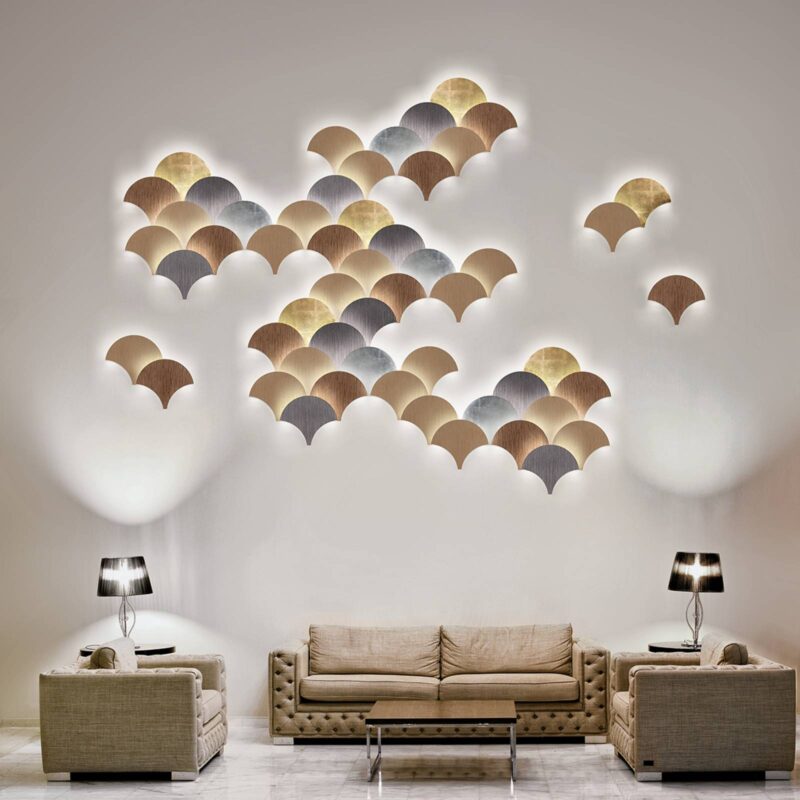 Dizajnové nástenné svietidlo Palm s LED diódami Nástenné svietidlo Palm LED je vyrobené úplne z kovu a je veľmi moderné a puristické. Jeho telo je udržiavané veľmi rovné s hĺbkou iba 5 cm. Na druhej strane je tvar žiarovky pri pohľade zhora o to viac pútavý a voľný pre rôzne interpretácie: môže to byť práve otvorená štylizovaná kvetina alebo vejár. Ak na stenu namontujete niekoľko svetiel dohromady v systéme zásuvnej skrinky, mohla by vzniknúť ilúzia nafúknutých mrakov. Okrem špeciálneho vzhľadu a všestranných možností inštalácie nástenné svietidlo Palm zaujme aj svetelným efektom. Okolo profilu je pripevnený pás LED, ktorý umožňuje vyžarovanie svetla zo všetkých strán. Nepriame svetlo, ktoré generuje Palm, zaručuje útulnú atmosféru v miestnosti. Vyrobené v Taliansku