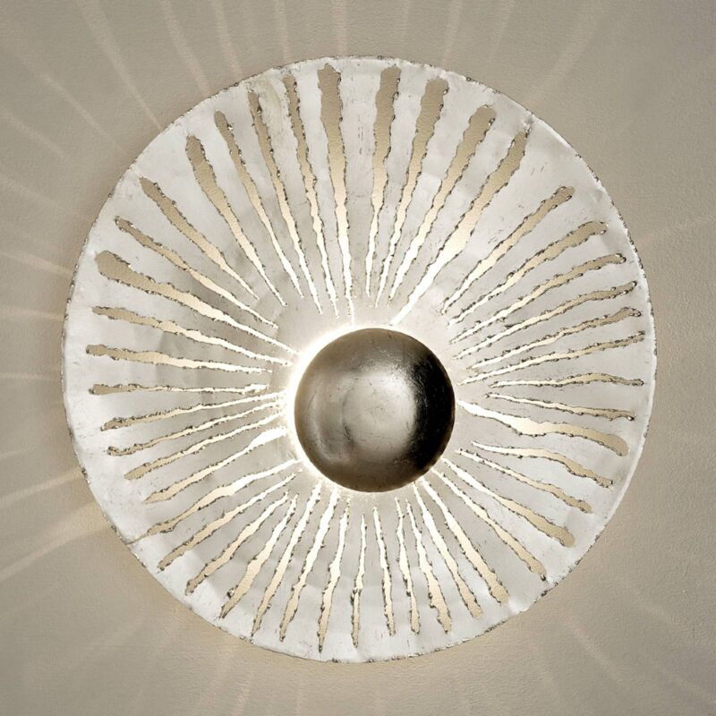 Nástenné LED svietidlo Pietro ponúka skvelé osvetlenie Nástenné LED svietidlo Pietro má postriebrené kovové teleso s nádherným lúčovým obrazcom, ktorý vyzerá ako slnko. Šesť LED žiaroviek poskytuje čisté svetlo. Toto nástenné svietidlo Pietro sa dá nainštalovať aj ako stropná lampa.