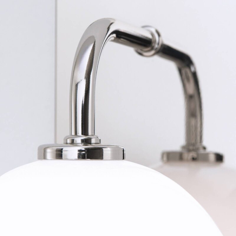 Nástenné svietidlo Rúrky, lesklé poniklované Táto krásna nástenná lampa Pipes zanecháva veľmi zvláštny dojem. Aj keď je jeho dizajn výnimočný, jeho jemné sfarbenie znamená, že dobre ladí s okolím. Opálovo žiariaca tienidlo na lampu vo forme gule vytvára kontrast s elegantným kovovým rámom z poniklovanej mosadze. Nástenné svietidlo Pipes sa vyznačuje vynikajúcou kvalitou, bolo vyrobené v Rakúsku.