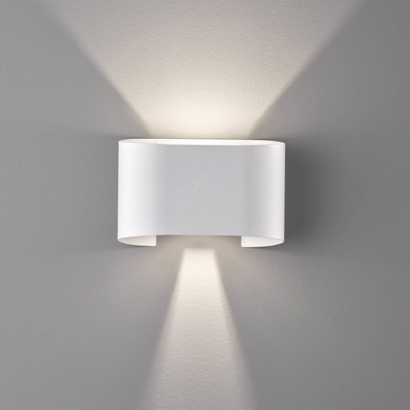 Moderné LED nástenné svietidlo Nástenné s nastaviteľným uhlom lúča Vďaka zakrivenému tvaru je možné nástenné svietidlo Wall ľahko kombinovať s modernými štýlmi vybavenia. Je vybavená teplými bielymi LED diódami a svetlo uniká smerom nahor aj nadol, pričom svetelný výkon je premenlivý a v prípade potreby ho možno upraviť. Na stene tak vznikne nádherná hra svetla, ktorá vyzerá veľmi efektívne a vytvára skvelú svetelnú atmosféru. Wall je nástenné svietidlo chránené proti striekajúcej vode a je preto vhodné aj do vlhkých miestností. Vďaka triede ochrany IP44 je možné svietidlo použiť aj na zastrešené vonkajšie priestory na atmosférické zvýraznenie fasád stien a na bezpečné osvetlenie chodníkov.