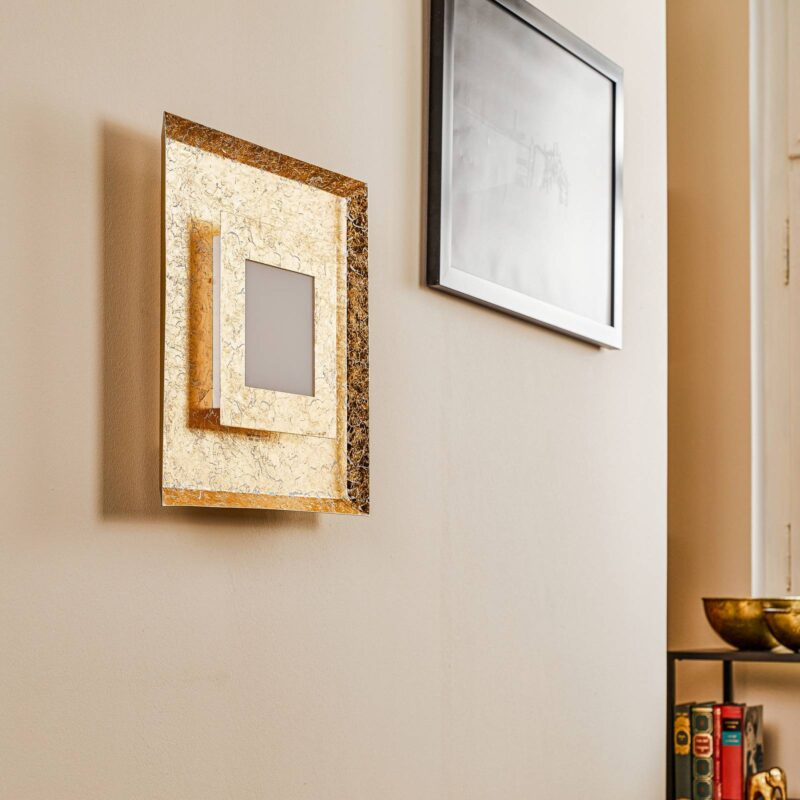 Nástenné LED svietidlo Window, 39 x 39 cm, zlaté