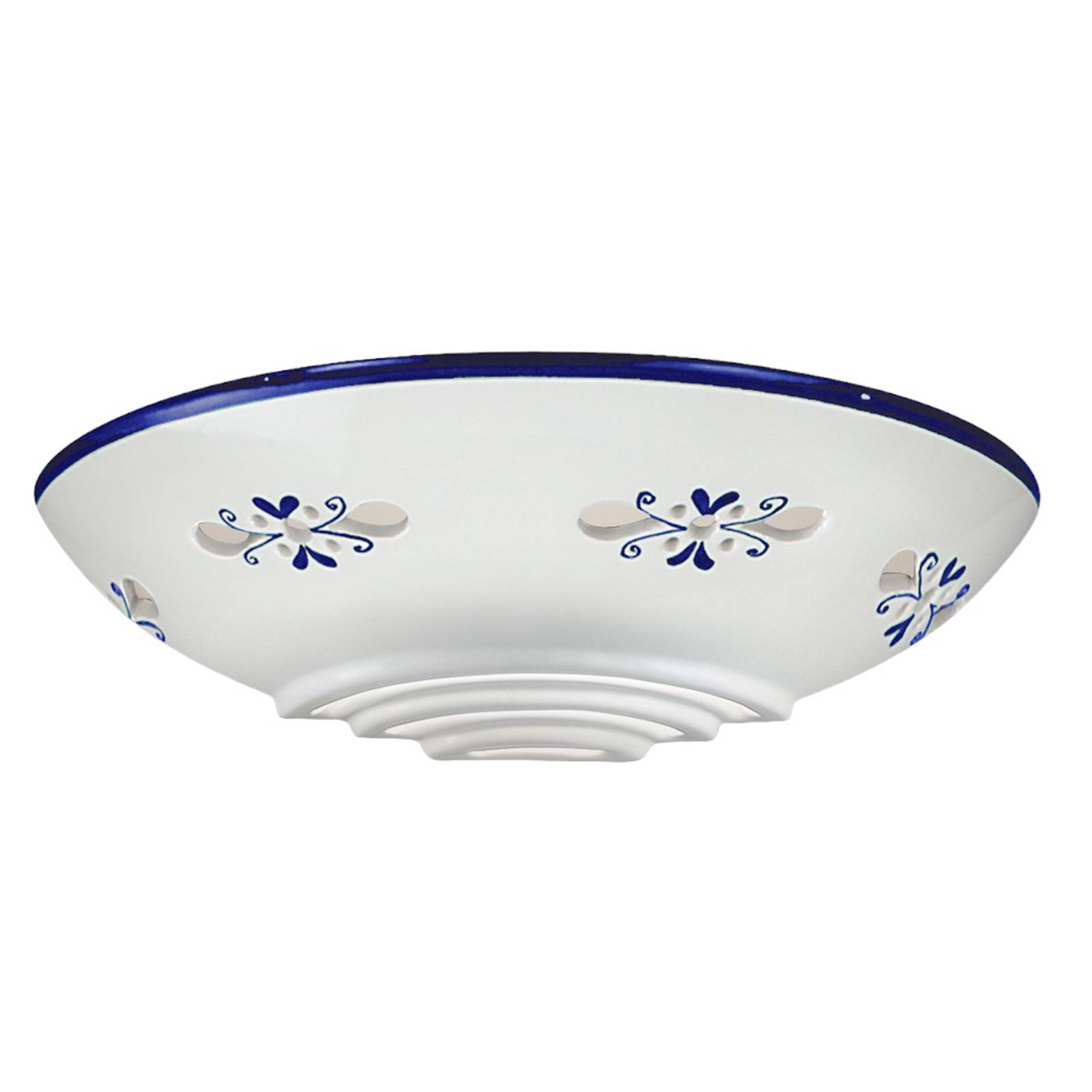 Pekná nástenná lampa Bassano – ručne vyrábaná v TalianskuNástenná lampa s rovnakým názvom bola vyrobená v Taliansku z ručne maľovanej keramiky Bassano. Možno ju osadiť žiarovkami s výkonom do 75 W alebo aj úspornými žiarovkami či modernými LED žiarovkami a svetlo vyžaruje nepriamo smerom nahor, čím vytvára efektívne osvetlenie s krásnou svetelnou žiarou na stene. Nástenné svietidlo je dokonalým doplnkom k ostatným svietidlám zo série Bassano a je ideálne na osvetlenie miestností zariadených v štýle vidieckeho domu.