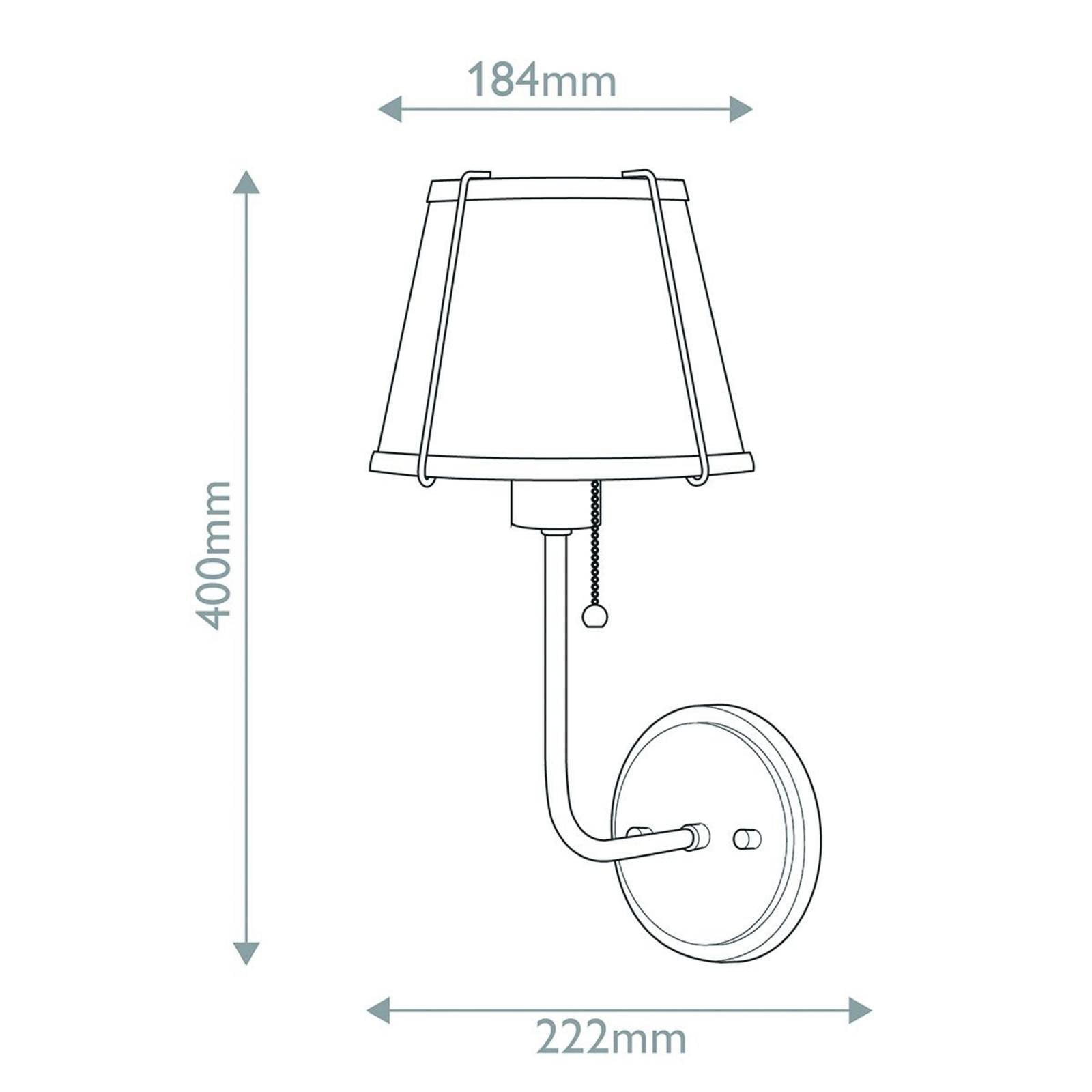 Nástenné svetlo Clarke 1 z kovu s ťahovým vypínačom Nástenné svetlo Clarke 1 zaujme svojím robustným kovovým tienidlom z vysoko kvalitnej ocele, ktoré sľubuje dlhú životnosť a nadčasovú eleganciu. Toto svietidlo je ideálnou voľbou pre rôzne obytné priestory, či už v obývacej izbe, jedálni alebo spálni. Jej krásny dizajn s tienidlom na lampu obklopeným kovovými výstuhami sa hodí do rôznych štýlov zariadenia a dodáva štýl každej stene. Pomocou ťahového vypínača je možné svetlo priamo na svietidle zapnúť a vypnúť. Nástenné svietidlo Clarke 1 je preto ideálnou náhradou za nočné lampičky