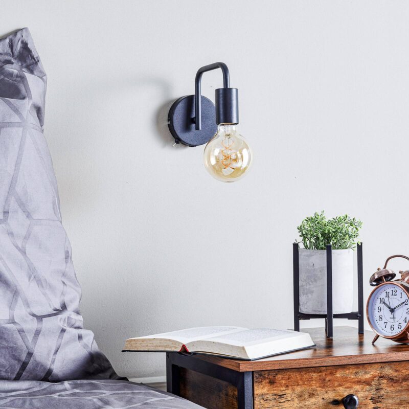 Nástenná lampa Diallo z kovu s minimalistickým tvarom Nástenná lampa z kovu pozostáva iba z okrúhleho držiaka na stenu a ohnutého ramena a objímky, je lakovaná matným lakom. Tento minimalistický dizajn z nej vytvára univerzálne použiteľný prvok, ktorého vzhľad je možné značne meniť zvolenými žiarovkami. Lampa pôsobí veľmi dekoratívne so žiarovkou s viditeľnými optickými vláknami a s mierne tónovaným alebo čírym sklom.