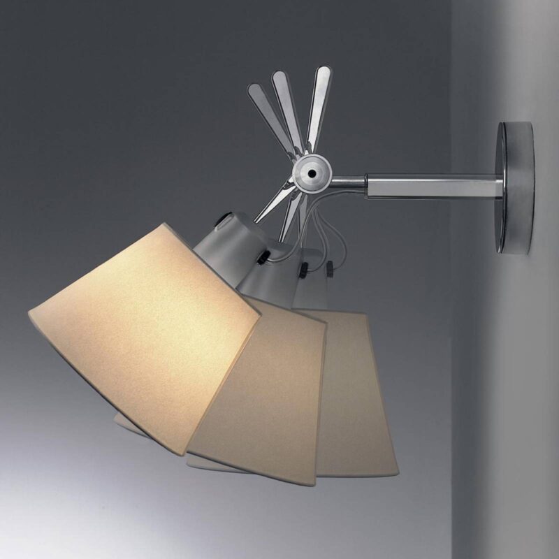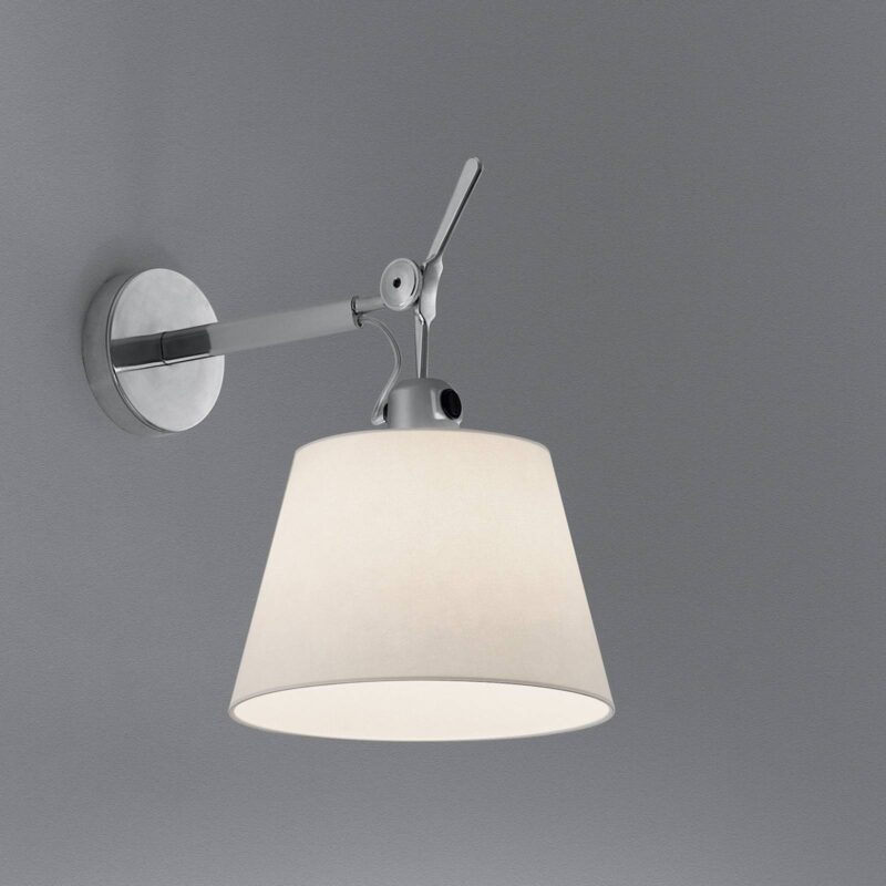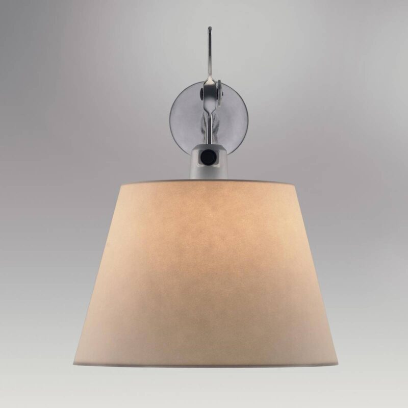 Klasické a elegantné nástenné svietidlo s talianskym dizajnom Štýlové rozšírenie série Tolomeo od Artemide – nástenné svietidlo Tolomeo 18 Diffusore je univerzálne vďaka sklopnému tienidlu. Kužeľové tienidlo je vyrobené z pergamenu vystuženého plastom. Rameno je, úplne v štýle série Tolomeo, z lesklého hliníka a je vybavené kĺbom, ktorý umožňuje nakláňanie tienidla v rozsahu 30°. Na zapínanie a vypínanie slúži tlačidlo umiestnené nad tienidlom priamo na svietidle. Toto klasické nástenné svietidlo sa dá použiť v mnohých oblastiach: Či už ako lampa na čítanie nad posteľou alebo sedačkou alebo ako zdroj svetla na chodbe. Jeho všestrannosť a nekonečná elegancia zabezpečuje, že Tolomeo 18 Diffusore vyzerá skvele takmer vo všetkých interiéroch. Dizajn pochádza z pera talianskych dizajnérov a architektov Michela De Lucchiho a Giancarla Fassina, ktorí už v roku 1987 spôsobili rozruch s prvým výrobkom zo série Tolomeo. Tolomeo 18 Diffusore je výsledkom ďalšieho vývoja a doplnením ocenenej série svietidiel a bez problémov zapadá do tejto úspešnej produktovej skupiny.