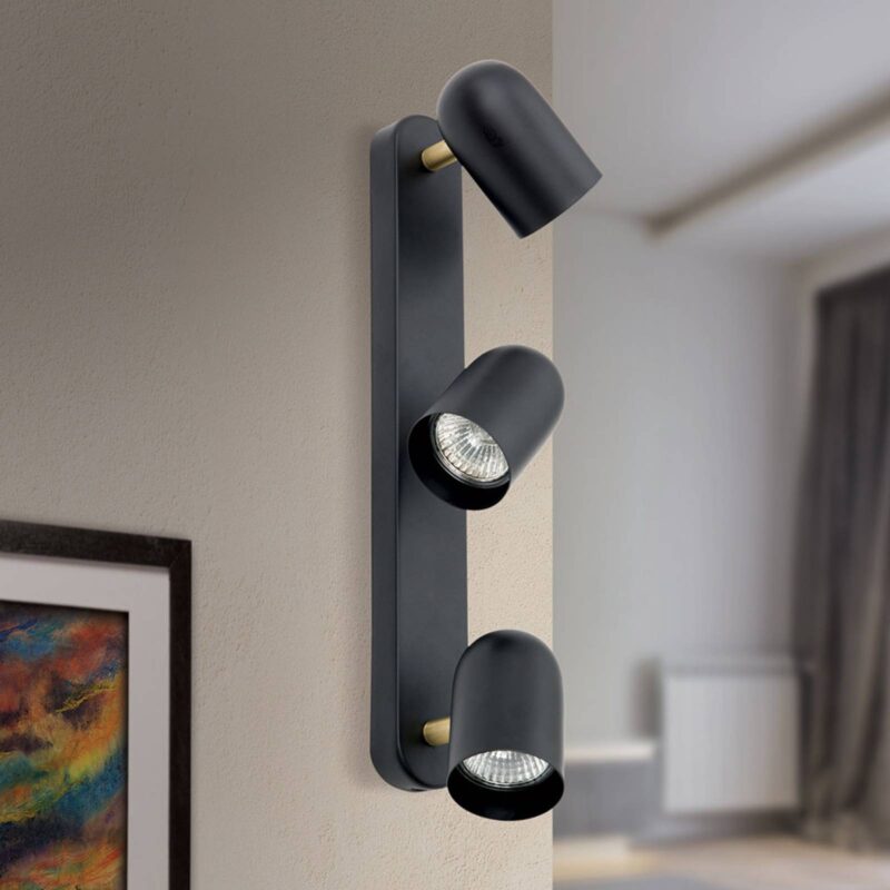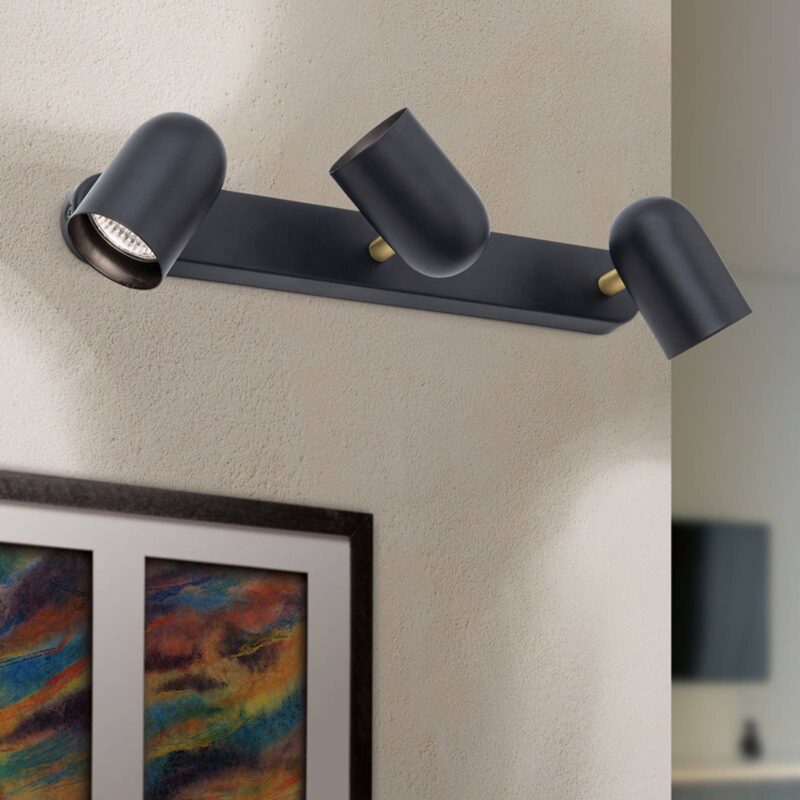 Čierne nástenné svietidlo s tromi plameňmi a otočnými hlavicami žiarovky Bradley, stropné svietidlo s tromi plameňmi, je vynikajúce na osvetlenie obytných priestorov každého druhu a je vítané v spálni, ako aj v kuchyni alebo na chodbách. Matné čierne svetelné hlavy je možné podľa želania otáčať a otáčať, aby bolo možné selektívne nastavovať akcenty. Elegantné akcenty vytvárajú aj ramená žiarovky vyrobené zo železnej mosadze. Tu sa odporúčajú žiarovky LED GU10 s dlhou životnosťou, ktoré odvádzajú dobrú prácu aj z hľadiska energetickej účinnosti.