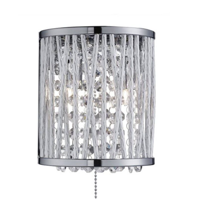 Elise – malá nástenná lampa s krištáľovými kvapkami zo skla Svieti po celej línii – moderné nástenné svietidlo Elise pozostáva z polkruhového zakriveného tienidlo na lampu z lesklých chrómovaných kovových vzpier. To umožňuje pohľad na kvapky iskrivých kryštálov vyrobené zo skla, ktoré sa pri zapnutí svetla rozvinú naplno. Svetlo je príjemne rozptýlené cez tieto sklenené prvky a vytvára úžasnú atmosféru. To je ideálne napríklad pre dodatočné osvetlenie v moderných obytných priestoroch.