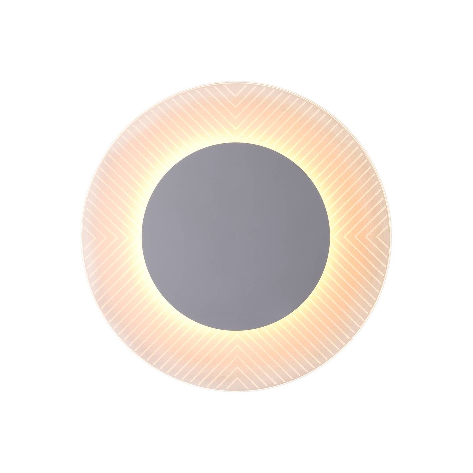 Nástenné svietidlo Fantasia LED na atmosférické, nepriame doplnkové svetlo Okrúhle nástenné svietidlo Fantasia pozostáva z tenkého akrylového disku s drážkami, pred ktorým je umiestnený kovový difúzor s teplým bielym svetelným zdrojom LED. Svetlo svieti na akrylový disk a súhra s drážkami vytvára pôsobivý odraz svetla.