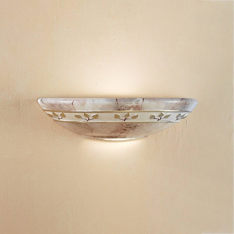 Klasické nástenné svietidlo FOGLIE MARMO MARRONDToto pekné nástenné svietidlo fascinuje dekoratívnym tienidlom z keramiky, ktoré je elegantne navrhnuté so vzorom listov v mramorovom vzhľade. Svetlo vyžaruje nerušene a jasne smerom nahor a malý svetelný vývod smerom nadol poskytuje pekný svetelný efekt. Nástenné svietidlo FOGLIE MARMO MARRON tak šíri nepriame svetlo a vytvára útulnú atmosféru.